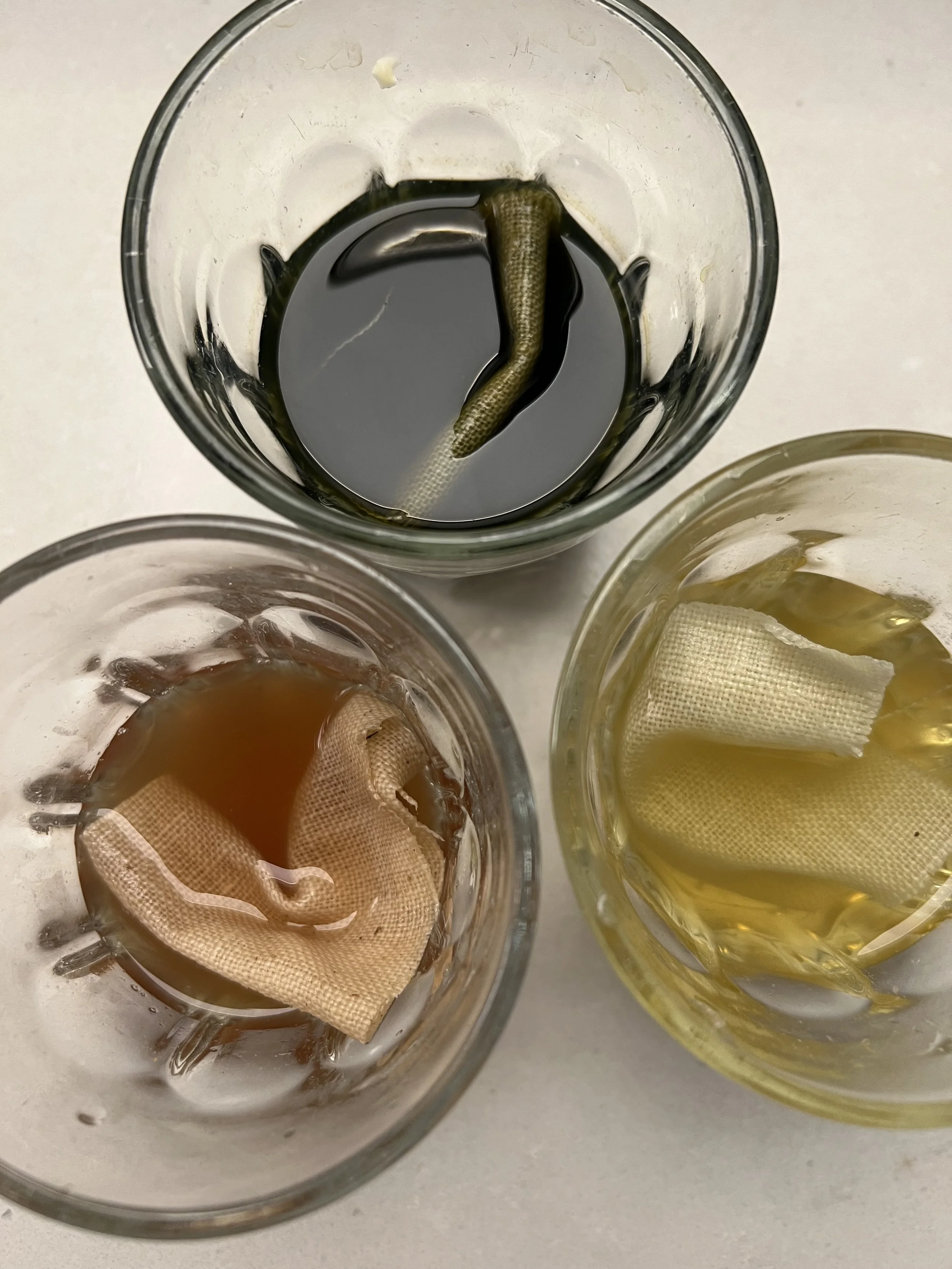 Linen napkins colored by natural materials, made for a exhibition at Gubransdalmuseene, “fra frø til lin” 22.6-20.10.2024