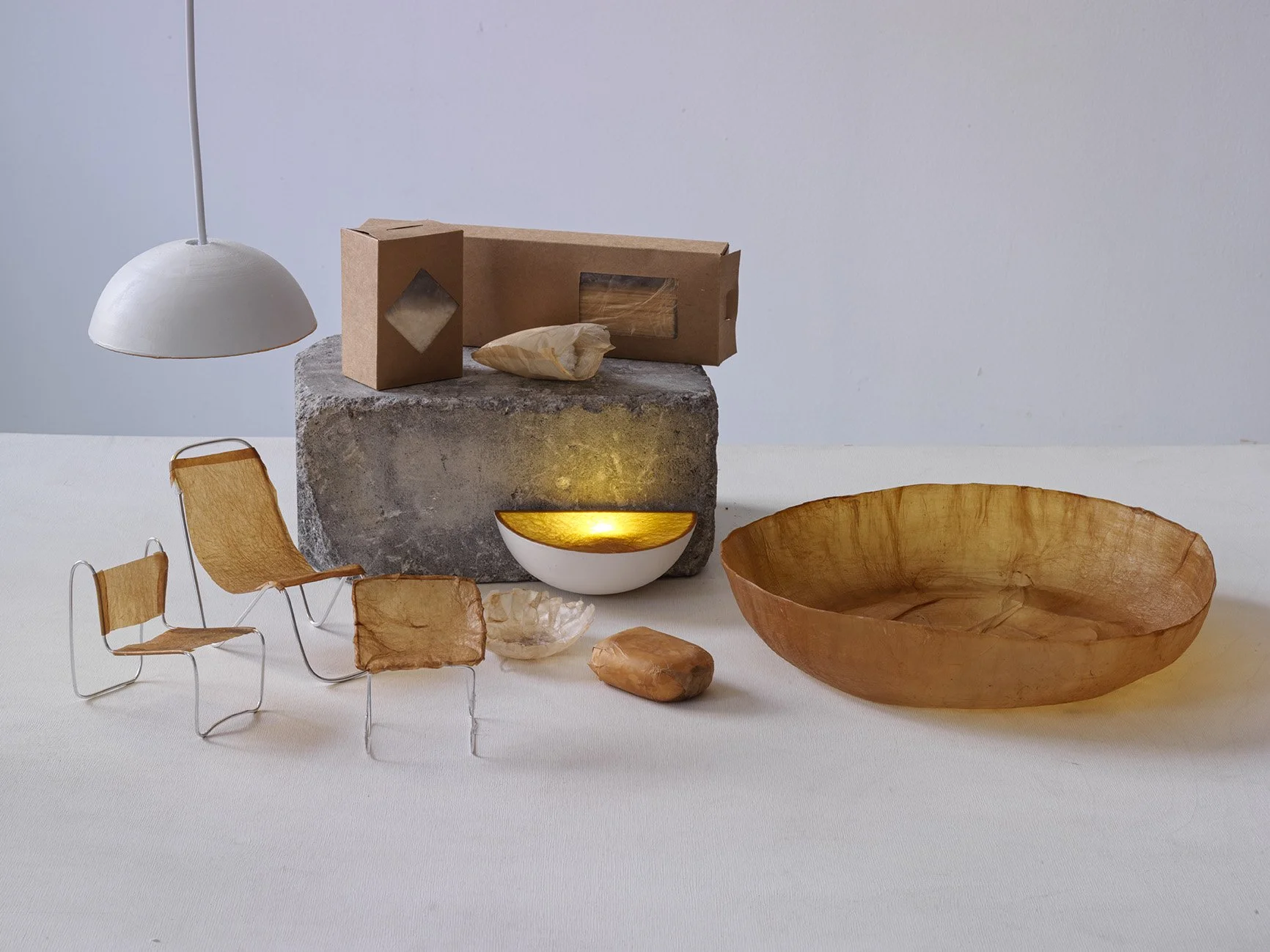 During the last decade designers have fabricated new materials by using natural growth processes. This intersection of design and biology results in new materials. In this project i include the material during the whole design process by growing it instead of simply sourcing it “off the shelf”. Using relevant methods and theory in order to discover bacterial cellulose properties and to evoke its aesthetic values in an attempt to promote its social acceptance, and, hopefully, results in meaningful and sustainable design applications. As a designer I want to think of the material as a primary design element instead of a final problem to solve.